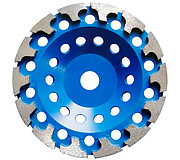 Алмазные чашки для сухого шлифования бетона, клинкера, искусственного и натурального камня и других твердых поверхностей. Двухрядное исполнение для грубой очистки поверхности. Высокая производительность и период стойкости.
