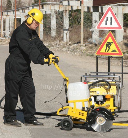 • Гидравлическая пила Atlas Copco LS 14 на передвижной тележке для ровного и быстрого разрезания асфальта