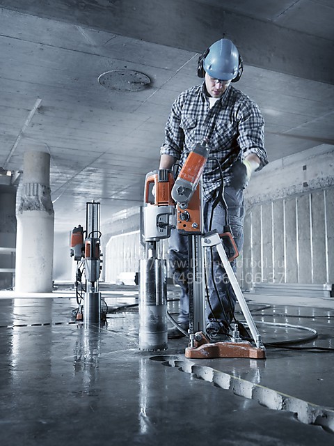 Легкая и удобная установка для сверление кирпича и железобетона. Есть обычная и удлиненная опорная стойка 1650 мм. - Установка алмазного бурения Husqvarna DM 650