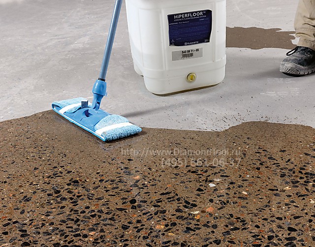 - Химический состав Hiperguard - это защитное средство высшего качества для пропитки поверхности, использующееся на финальном этапе. Оно проникает в бетон, образуя пленку на поверхности капилляров. Это повышает поверхностное натяжение пола, препятствующее поглощению воды, масел, жиров и грязи. Пятна остаются на уровне поверхности, это облегчает уход за полами и чистку, и продлевает срок службы. Средство придает характерный отчетливый рисунок пола.