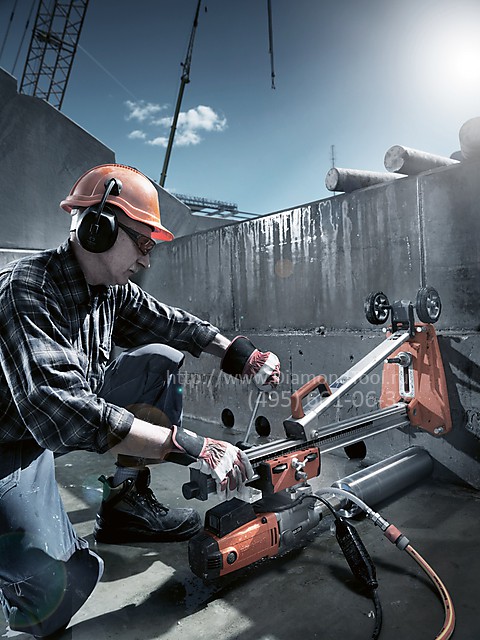 Легкая и удобная установка. Сверление отверстий под наклоном. - Установка алмазного бурения Husqvarna DM 340