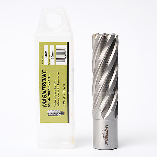 Корончатое сверло из быстрорежущей стали (HSS) предназначено для высокопроизводительного сверления глубоких и точных отверстий большого диаметра в листовом металле, трубах и других заготовках. Оснащено хвостовиком Weldon 19 для надежного крепления и эффективной передачи крутящего момента на магнитных сверлильных станках.