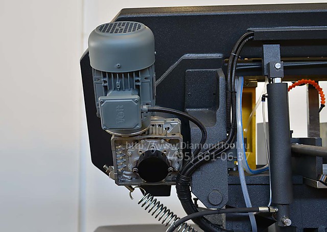 • Бесступенчатая регулировка скорости ленточнопильного полотна в стандартной комплектации. Позволяет точно настроить режимы резки под конкретную заготовку, тем самым увеличить срок службы ленточнопильного полотна.