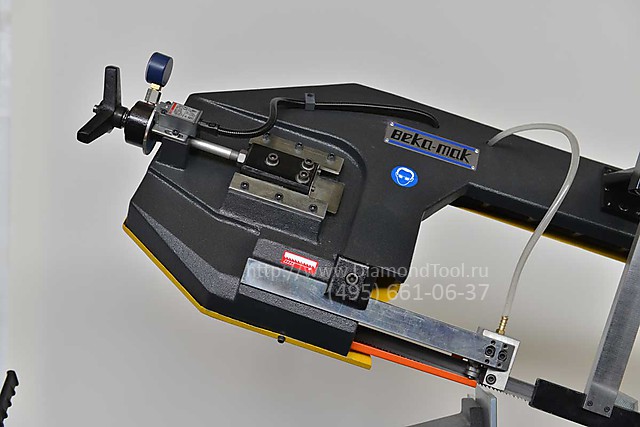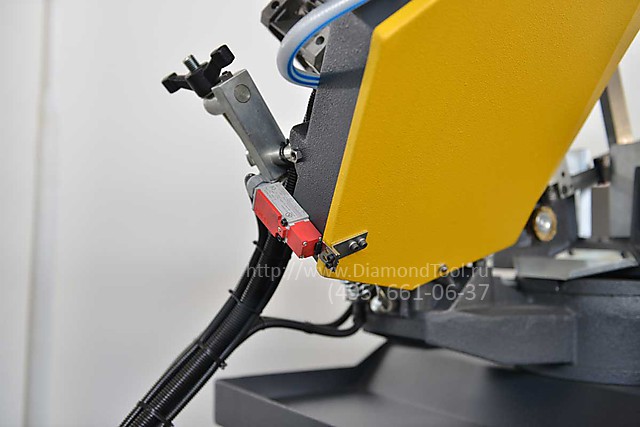 • Мощные гидравлические зажимные тиски. Позволяют быстро выполнить угловой рез на коротких заготовках.