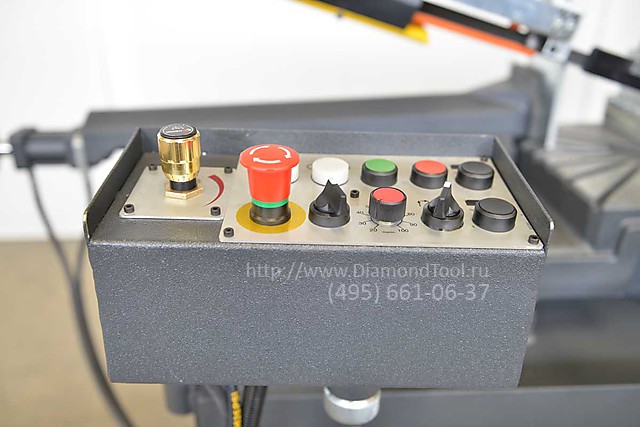 • Бесступенчатая регулировка скорости ленточнопильного полотна в стандартной комплектации. Позволяет точно настроить режимы резки под конкретную заготовку, тем самым увеличив срок службы ленточнопильного полотна.