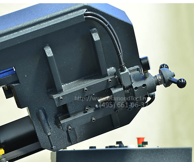 - Бесступенчатая регулировка скорости ленточнопильного полотна в стандартной комплектации. Позволяет точно настроить режимы резки под конкретную заготовку, тем самым увеличив срок службы ленточнопильного полотна.