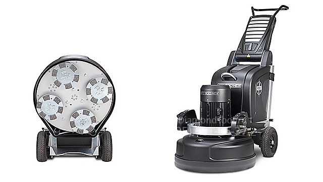 - В машине установлены 4 головки, благодаря чему вы получаете до 30% более эффективную подготовку поверхности и шлифовку и очевидно, более ровный пол.