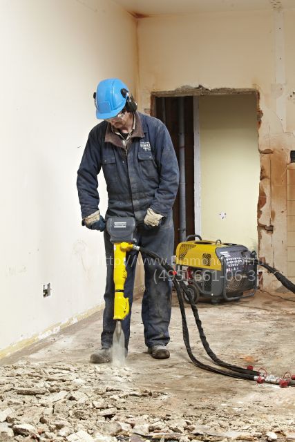 Легкий гидравлический отбойный молоток с "Т" образной ручкой. Предназначен для работ с асфальтом, кирпичной кладкой, мерзлым грунтом, легким бетоном. Так же данная модель отбойного молотка применяется для уплотнения грунта со специальной насадкой-трамбовкой. Молоток оснащен системой виброгашения, данная система снижает силу вибрации, которая передается на руки оператора.