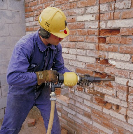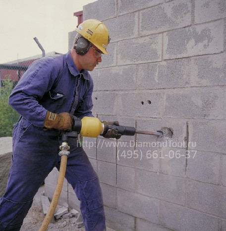 Пневматический молоток (шестигранный 22x82,5) (7/8x3 1/4) с колпачковым фиксатором предназначен для небольших работ в строительстве. Основное направление это разрушение кирпичной кладки, работы с застывшем раствором, снятие керамической плитки, штробление стен, обработка пенобетона и мягких видов камня. Применяется в дорожном строительстве и ремонте. Идеально подходит для работ с асфатьто-бетонным покрытием. Небольшой вес отбойного молотка и «D» образная ручка позволяет работать молотком как вертикально, так и горизонтально.