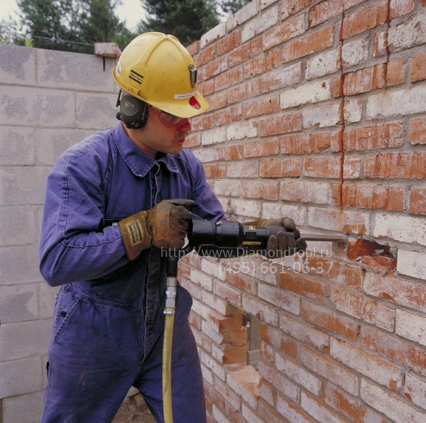 • Разрушение кирпичной кладки пневмомолотком TEX05