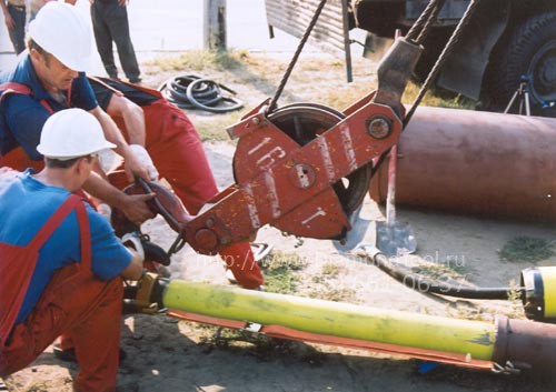 • Пробойник закрепляется к подъёмному крану для установки в вертикальное положение