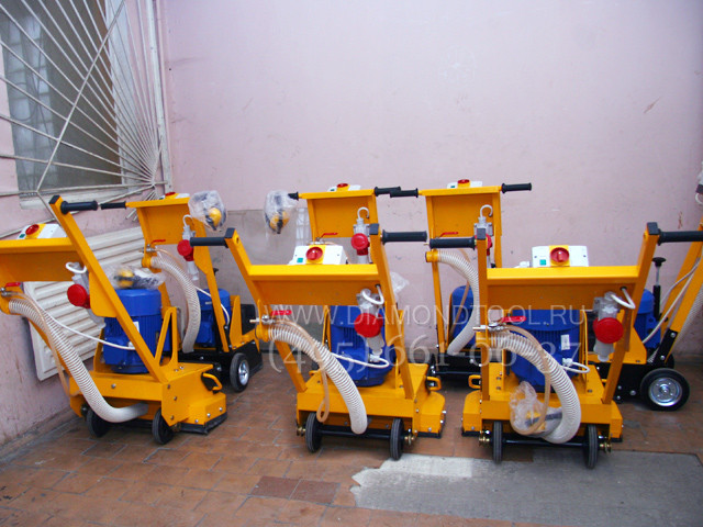На мозаично шлифовальных машинах GM-245 установливается по 6 алмазных франкфуртов, которые крепятся к траверсам - используя быстросъемную технологию. Это позволяет быстро и просто производить замену шлифовальных франкфуртов без применения дополнительного инструмента. Шлифовальные франкфурты, применяемые на данных моделях шлифовальных машин, имеют значительный ресурс работы, благодаря отсутствию вибрации режущего инструмента и его защиты от ударных нагрузок.