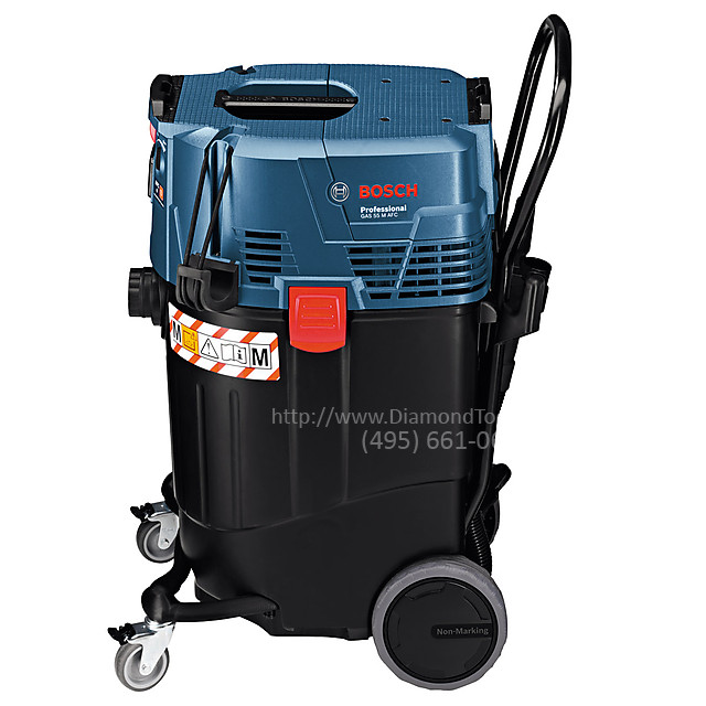 Строительный пылесос Bosch GAS 55 M предназначен для сбора, всасывания, перемещения и отделения древесной стружки, а также негорючей сухой пыли, негорючих жидкостей и водновоздушной смеси. Пылесос прошел проверку на предмет собирания пыли и соответствует классу пыли М. Он пригоден для повышенных нагрузок при промышленном использовании, напр., для ремесленных работ, при использовании в промышленности и в мастерских.